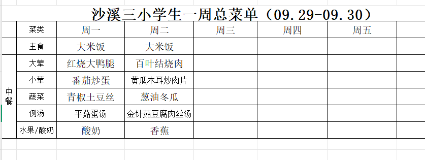 沙三小2025-2026学年第一学期第6周学生食谱
