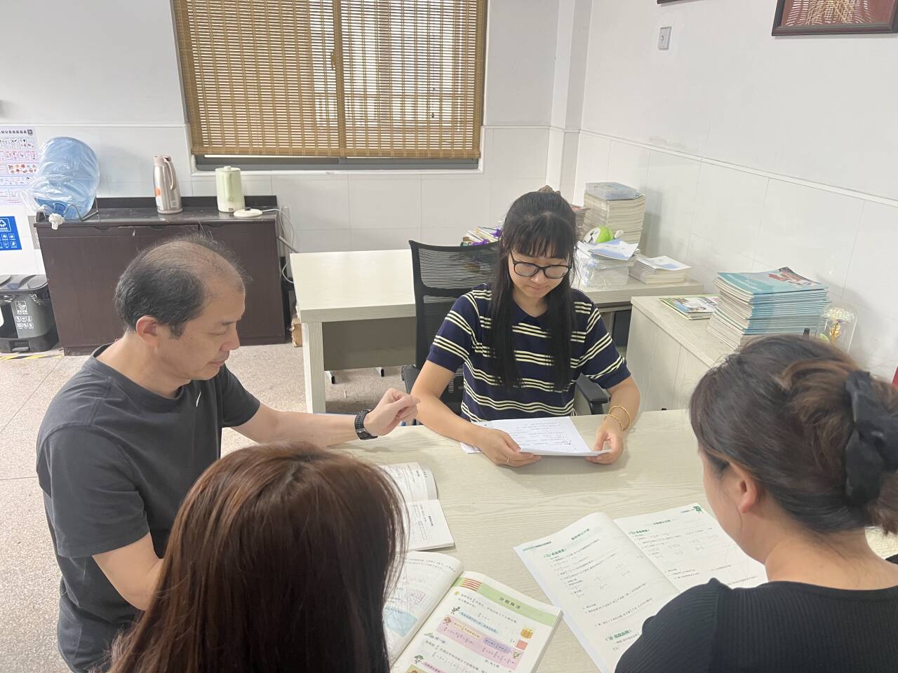 10月23日下午,六年级数学老师在办公室进行了第八周集体备课,六年级数学老师主要针对学习中易错的知识点设计了一些习题,帮助学生更好地突破重难点,还设计一些易错题加强练习。