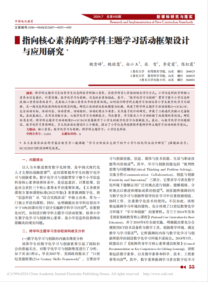 2025年4月(一):指向核心素养的跨学科主题学习活动框架设计与应用研究_魏雪峰