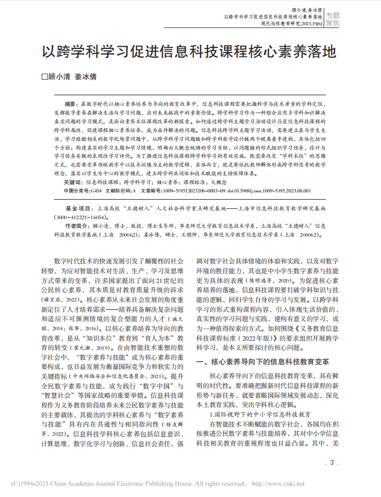 2025年5月(一):以跨学科学习促进信息科技课程核心素养落地_顾小清